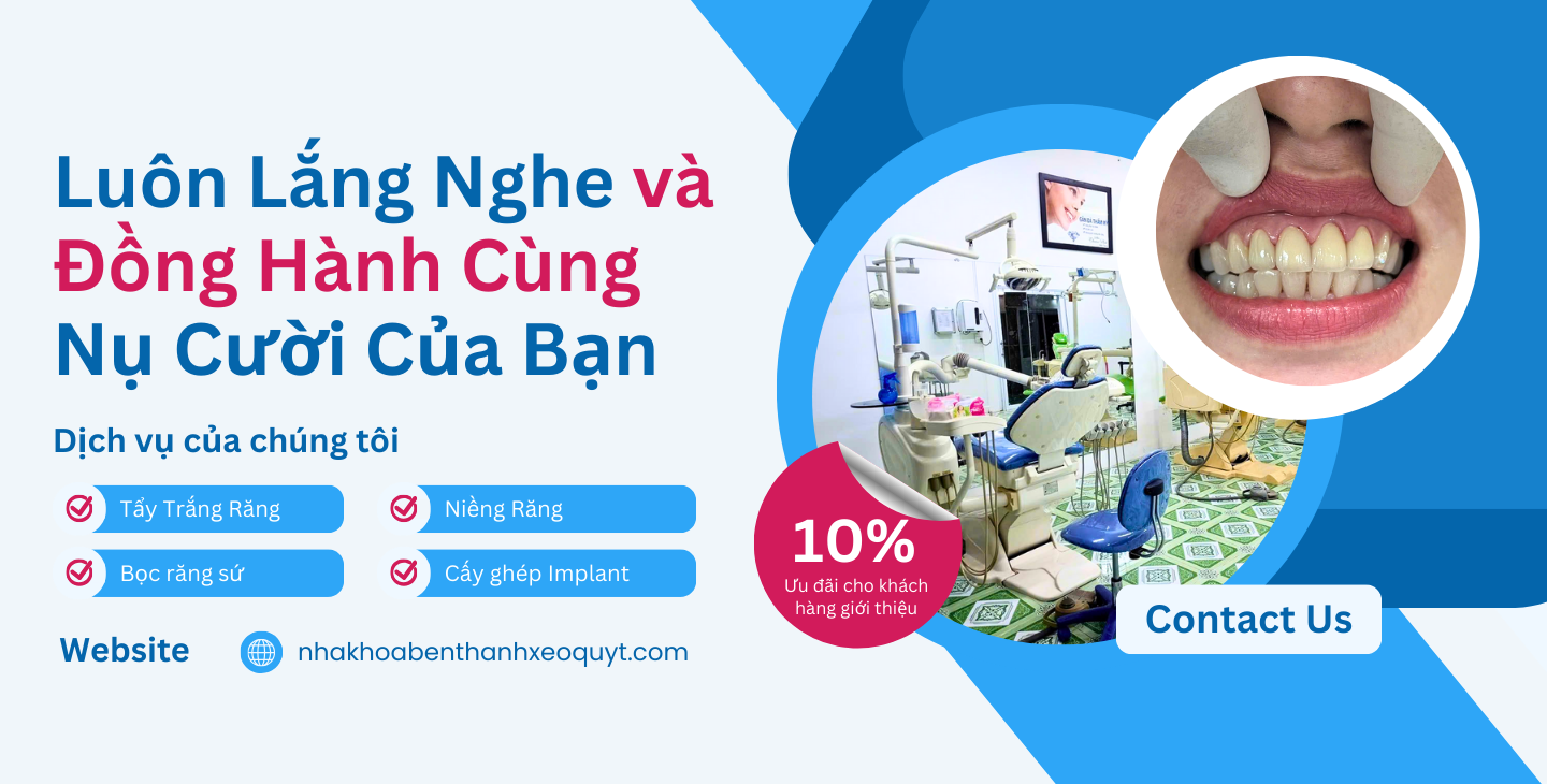 Hơn 2.000 khách hàng đã tin tưởng và lựa chọn Nha khoa Bến Thành là nơi chăm sóc sức khỏe răng miệng cho bản thân và gia đình. Sự hài lòng của khách hàng chính là minh chứng rõ ràng nhất cho chất lượng dịch vụ, tay nghề bác sĩ và quy trình điều trị chuyên nghiệp tại đây. Từ các dịch vụ cơ bản đến chuyên sâu như chỉnh nha, cấy ghép implant hay thẩm mỹ nụ cười, Nha khoa Bến Thành luôn cam kết mang lại kết quả tối ưu và trải nghiệm thoải mái cho mỗi khách hàng.